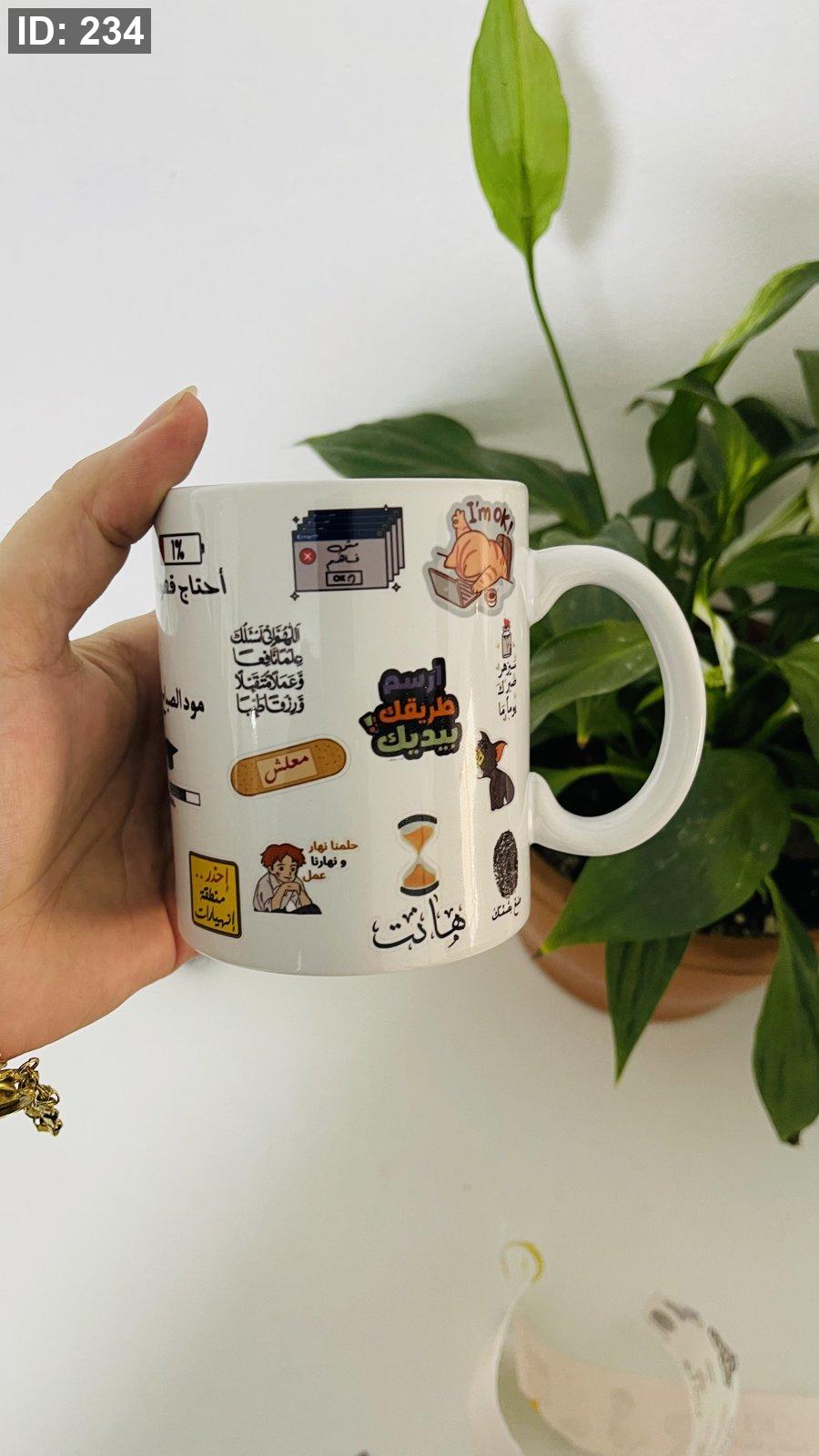 كوب(كأس ابيض مطبوع ملون )